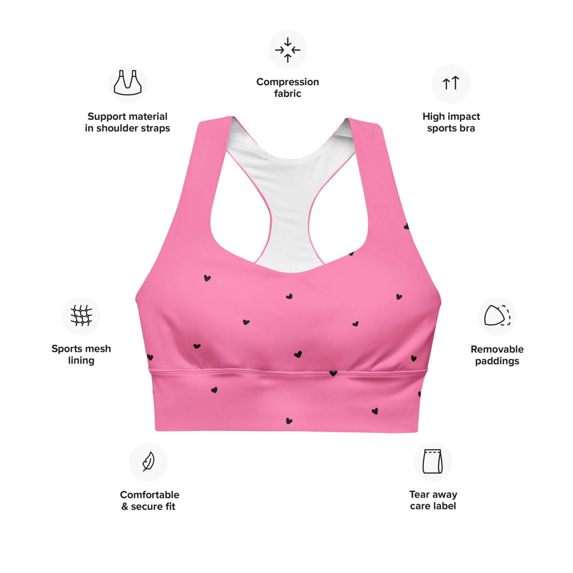 Sports Bra: Black Hearts Collection in Maxine